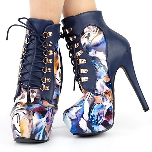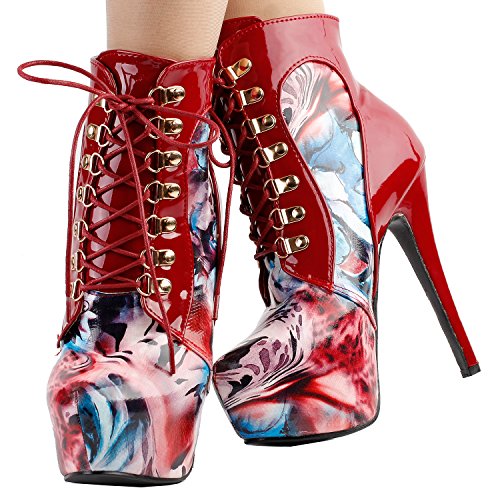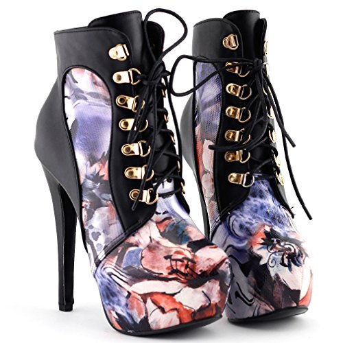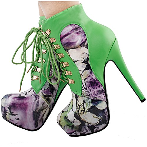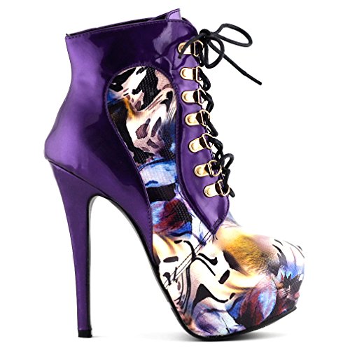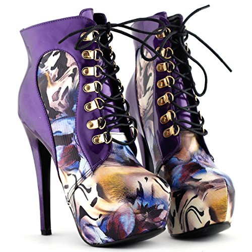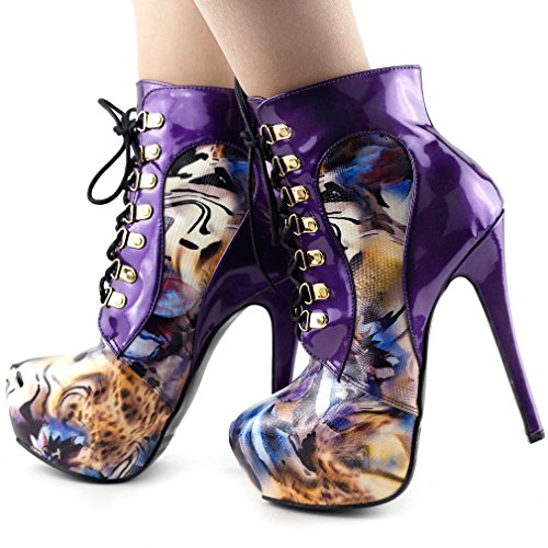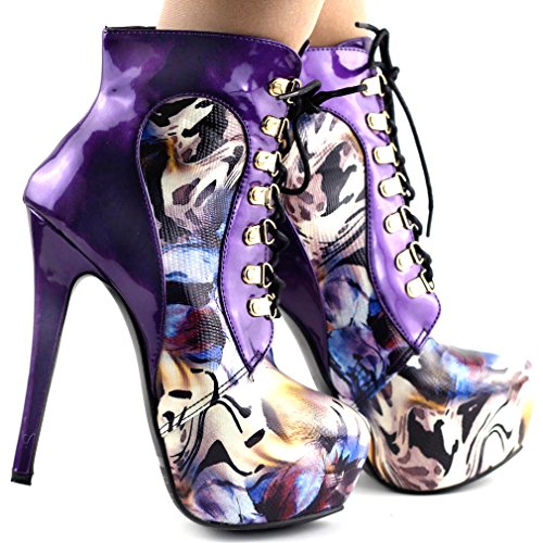 | Show Story Black/Purple Lace Up Stiletto Heel Gothic Ankle Bootie Pump,LF80831 |