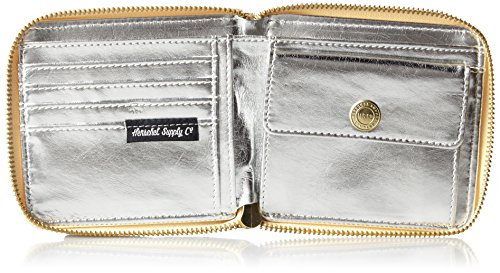 The full zip gift set Walt wallet is constructed with gold and silver toned material, and features room for change, paper currency and cards.