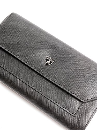 Binding : Apparel Product Description This Automobili Lamborghini envelope-style wallet has been made from leather embellished with a saffiano-effect print design. It features roomy compartments for bills and papers, a central zip with a coin purse and 12 card slots. The Automobili Lamborghini enamelled-metal shield in matt gunmetal silver has been attached to the back panel. Dimensions: 19.5 x 11 cm. Composition: 100% leather. Made in Italy. 0