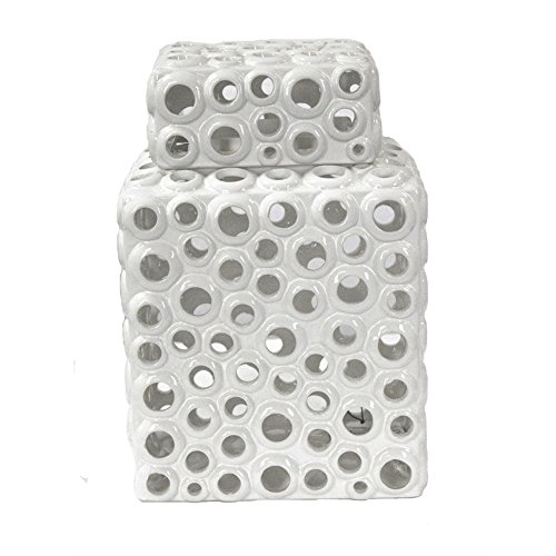 Benzara Soothing Ceramic Pierced Covered Jar, White