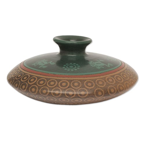 NOVICA Animal Themed Ceramic Vase, Brown and Green, 'Frogs And Lilies'
