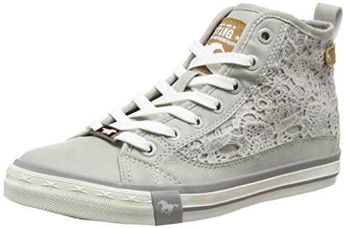 Studio : Mustang Publisher : Mustang Binding : Apparel Product Description This lovely Mustang Light Gray Lace Up Sneaker shoe is stylish as well as practical. This shoe would be perfect to add to?your Spring/Summer wardrobe. These shoes are a must have for the lady who loves comfort.? Light Gray upper is finished off beautifully with side lace panels and white lace up closure.? These Mustang high tops would lend themselves perfectly to any outfit. 0