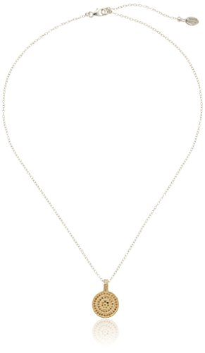 Wire-rimmed Gold-Plated and Sterling Silver reversible divided disc necklace on 16" to 18" adjustable silver chain.