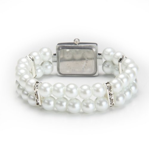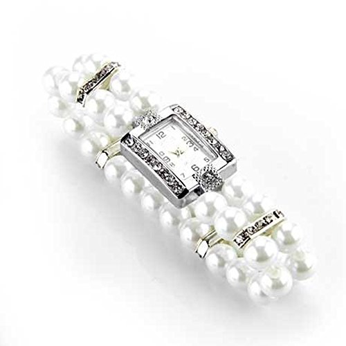 -. Title : SODIAL(R) Metal Pearl Crystal Bracelet Bangle Stretch Square Dial Wristwatch Wrist Watch