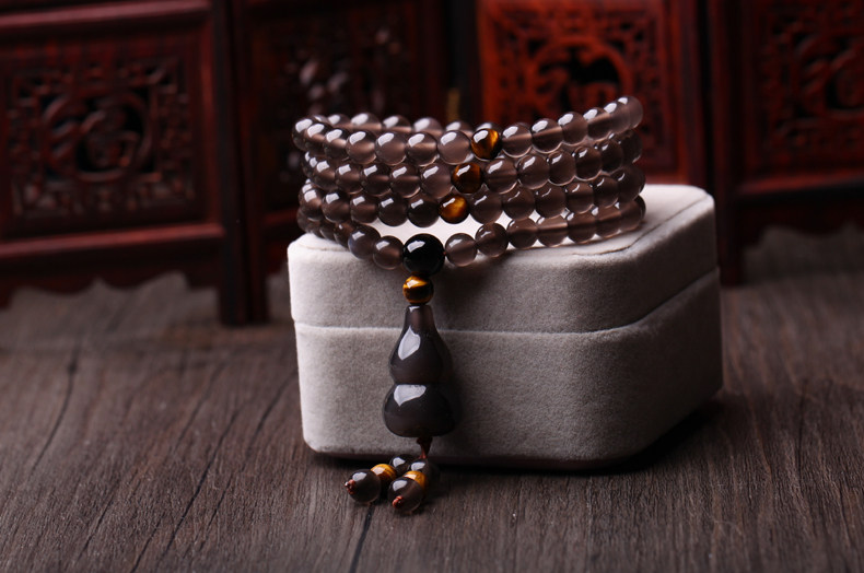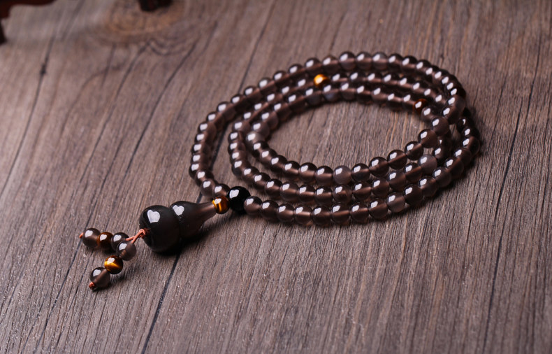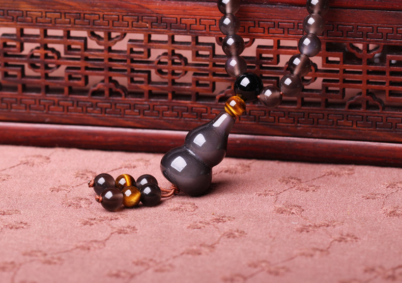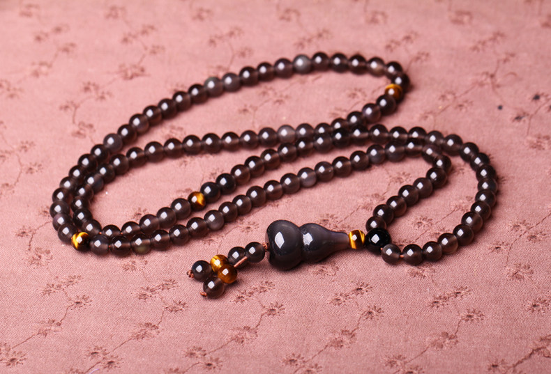 天然冰种黑曜石佛珠手链 水晶手串平安葫芦男女饰品