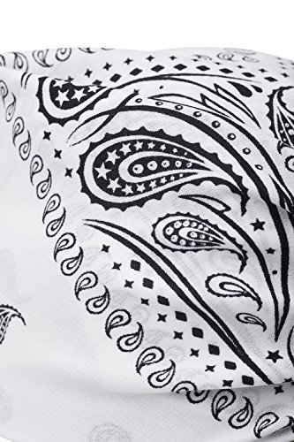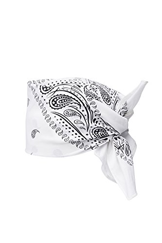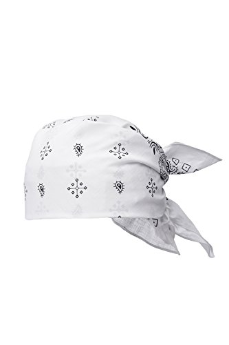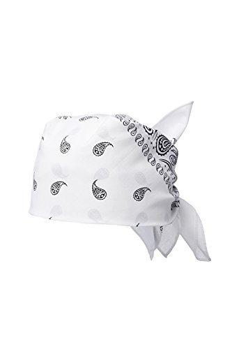 Binding : Apparel Product Description The iconic paisley pattern acquired its name from a Scotland town of Paisley where a lot of shawls with 'Persian pickles' on them were produced. The design is still most common on bandanas. Join the club of rock-stars, musicians, celebs and fashionistas who stick to the classic style! HIGHLIGHTS ? 100% cotton fabric that delivers the greatest comfort. It is soft, highly absorbent and breathable which makes your bandana ideal headwear for summertime, active lifestyle or workouts. ? All four edges are neatly hemmed. ? Classic square shape and ample size provide multiple ways to wear your headpiece. ? Machine washable. To keep your bandana looking like new one, machine wash it with like colors at 86º F / 30º C or colder. WEAR TIPS ? Traditional wrap. Fold your bandana in half to make a triangle, place the center part at the forehead and tie the ends at the back of your head. Tuck the pointed end into or under the knot. ? Headband. Fold the bandana into a triangle. Roll it into a strip starting from the widest part. Wrap around the forehead and knot in the back or front. ? Choker. Pinch the end of bandana and roll it diagonally, until you reach the end of the material. Tie the strip around your neck. ? Desperado neckerchief. Fold the bandana into a triangle. Wrap around the neck and knot in the back. ? Bracelet. Fold the bandana into a triangle. Roll it into a strip starting from the widest part. Wrap around your wrist and tie the ends. You can use such a bracelet for mopping your brow. ? Face mask. The bandana can serve as a mask to protect your face from wind and dust while you are enjoying bike or motorcycle riding. 0