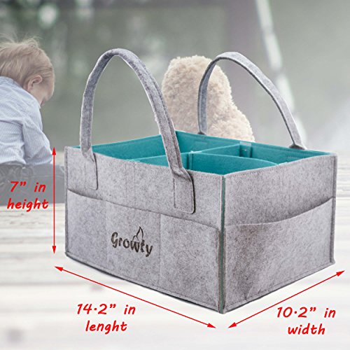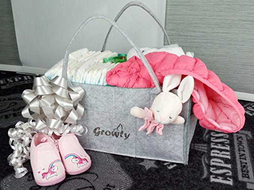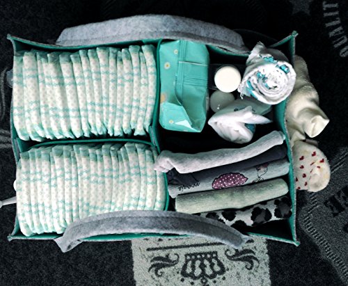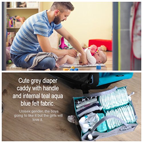How do better organized mum do it As a parent, the long days with a child can be chaotic. Our diaper caddy is a life saver for the countless diaper changes that come with a new baby. The organizer is excellent, offering a ton of storage compartments. We store all. Diapers, wipes, change of clothes, blankets, toys, bath and body products, thermometer, diaper cream, etc.. Everything we could need in one location. And it's entirely mobile for bringing all from room to room. A MUST HAVE FOR NEW PARENTS. It's much more comfortable and convenient to get everything done fast. WE LOVE IT. The large size is excellent. The felt fabric is a smart choice. It's ultralight, not heavy when it's fully stocked. At the baby shower, the future mum screamed: "COULDN'T BE HAPPIER!". They love the fabric dividers, which helps organize a wide variety of items. Look forward to getting years of use from our excellent diaper caddy organizer. WE DO THE JOB, Great Baby Shower Gifts for women and babies.