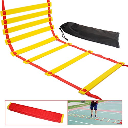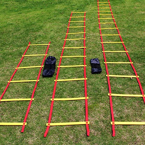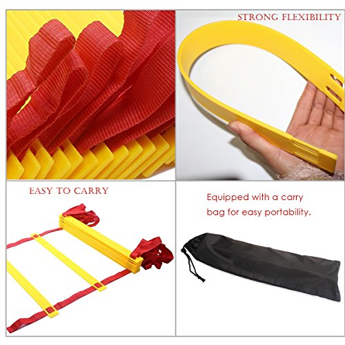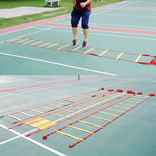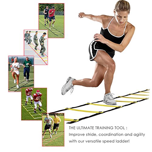 -. Feature : IMPROVE YOUR AGILITY - The adjustable rungs can make any training session challenging. Incorporate into training drills for all ages and abilities. / THE ULTIMATE TRAINING TOOL - Improve stride, coordination and agility with our versatile speed ladder! / 12 Durable plastic rungs, overall length: 20 feet. Adjustable flat plastic rungs for safety and according to your needs. / The speed or agility ladder is a device employed to improve feet speed, agility and co-ordination. High intensity training can be doing both indoors and outdoors. / Equipped with a carry bag for easy portability. Great tool for you to improve quickness through accelerated foot strike and lift frequency.