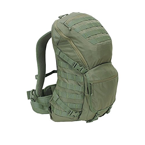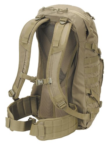 -. Feature : Just 3.19 pounds while providing 28.5 liters of storage / Wishbone steel frame base combined with trampoline style mesh frame / Contoured adjustable and padded shoulder straps / MOLLE webbing so you can add additional pouches or pockets. / Hidden rain cover and Hydration compatible