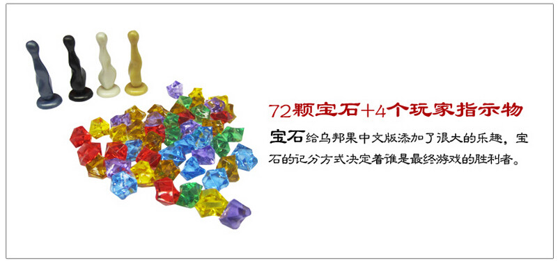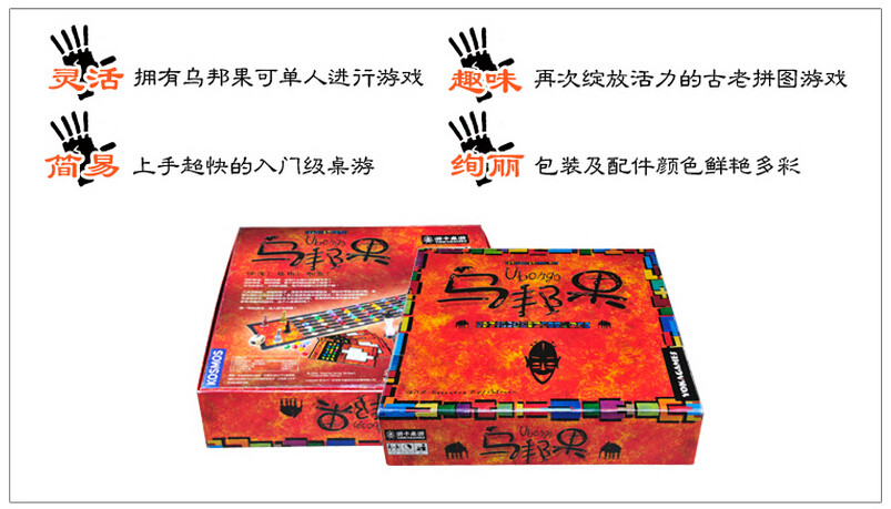 Each player to pick their own puzzle board and 12 are not the same shape of the puzzle, after a player rolls the dice and flip the hourglass starts. Which piece of the puzzle necessary to use the dice by the sign, and then control each player puzzle board, so each player will not be the same. Now, after each player to try their own hands jigsaw puzzle filled graphics board as soon as possible, the first player to complete shouted "Ubongo!", He can move on the main game board small own colors pick two people and stones, in the meantime, before the finish in the hourglass flows other players to finish their puzzle. Collected the most gems of the same color of the players is the winner! And every time this player is not necessarily the fastest.
