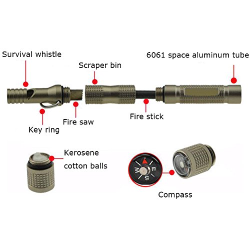 CyberDyer Multi-functional Survival Whistle Flint Fire Starter Emergency Survival Kit Multitool Flint With Compass And Whistle