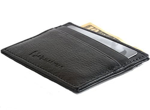AlpineSwiss Leather Card Case Wallet Slim Super Thin 5 Card Slots Front Pocket,One Size,Black