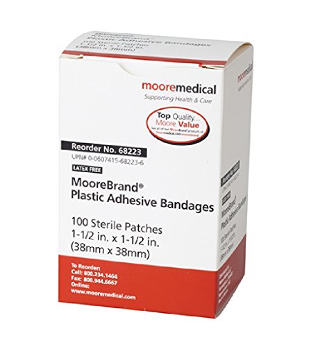 -. Binding : Health and Beauty -. Brand : MOORE Medical -. Color : Tan -. Feature : MooreBrand Adhesive Bandages / Item Model Number: MM-68223 / Size: 1.5 x 1.5 Inch / Sterile. Sheer Plastic Patch / Item is sold by 1/Box of 100 -. IsAdultProduct : 0 -. Label : Moore Medical -. Manufacturer : Moore Medical -. MPN : MM-68223 -. PackageQuantity : 1 -. PartNumber : MM-68223 -. ProductGroup : Health and Beauty -. ProductTypeName : HEALTH_PERSONAL_CARE -. Publisher : Moore Medical -. Size : 1.5 x 1.5 Inch -. Studio : Moore Medical -. Title : Moore Medical Adhesive Bandages 1.5" X 1.5" Sheer Plastic Patch - Box of 100