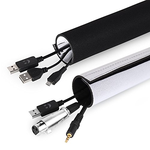Kootek 236'' ( 2 X 118'' ) Cable Management Sleeves, Neoprene Cable Organizer Wrap Flexible Cord Cover Wire Hider Reversible Black & White, Cuttable by Yourself for TV Computer Office Theater