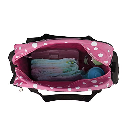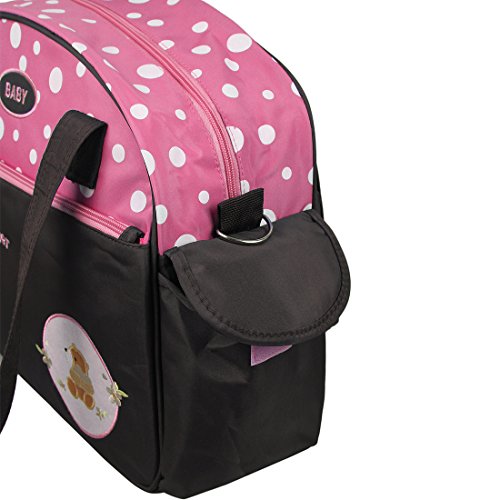 - Feature : A great polyester diaper bag for stylish Mom with lightweight don't feel heavy and bulky, even when it's completely packed! / Both sides have one pocket to put things you need. Large capacity inside can keep babies clothes and toys. / The extra straps that make you more convenience to carry the diaper bags.The outside pockets that can out diapers, very convenience.