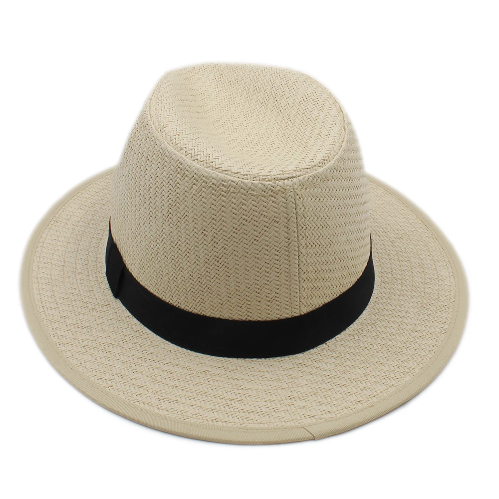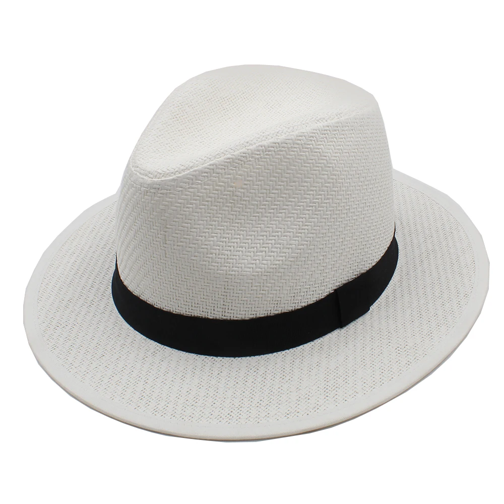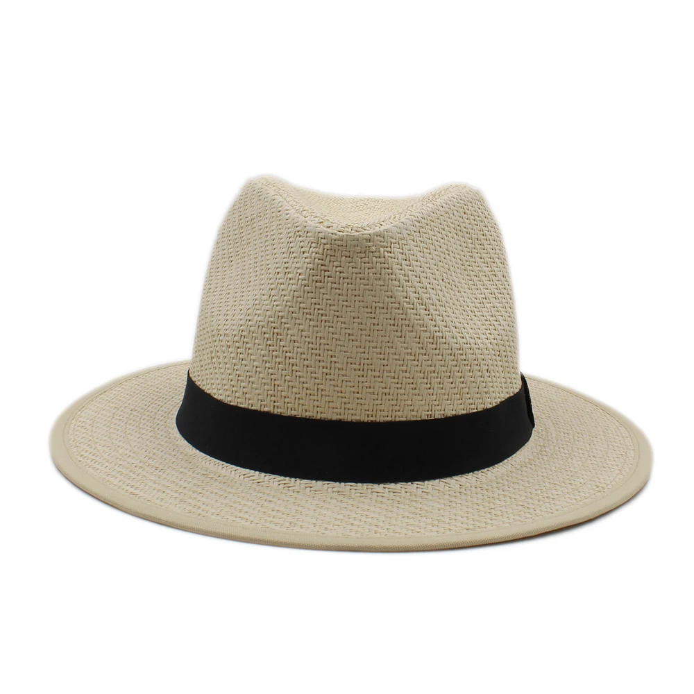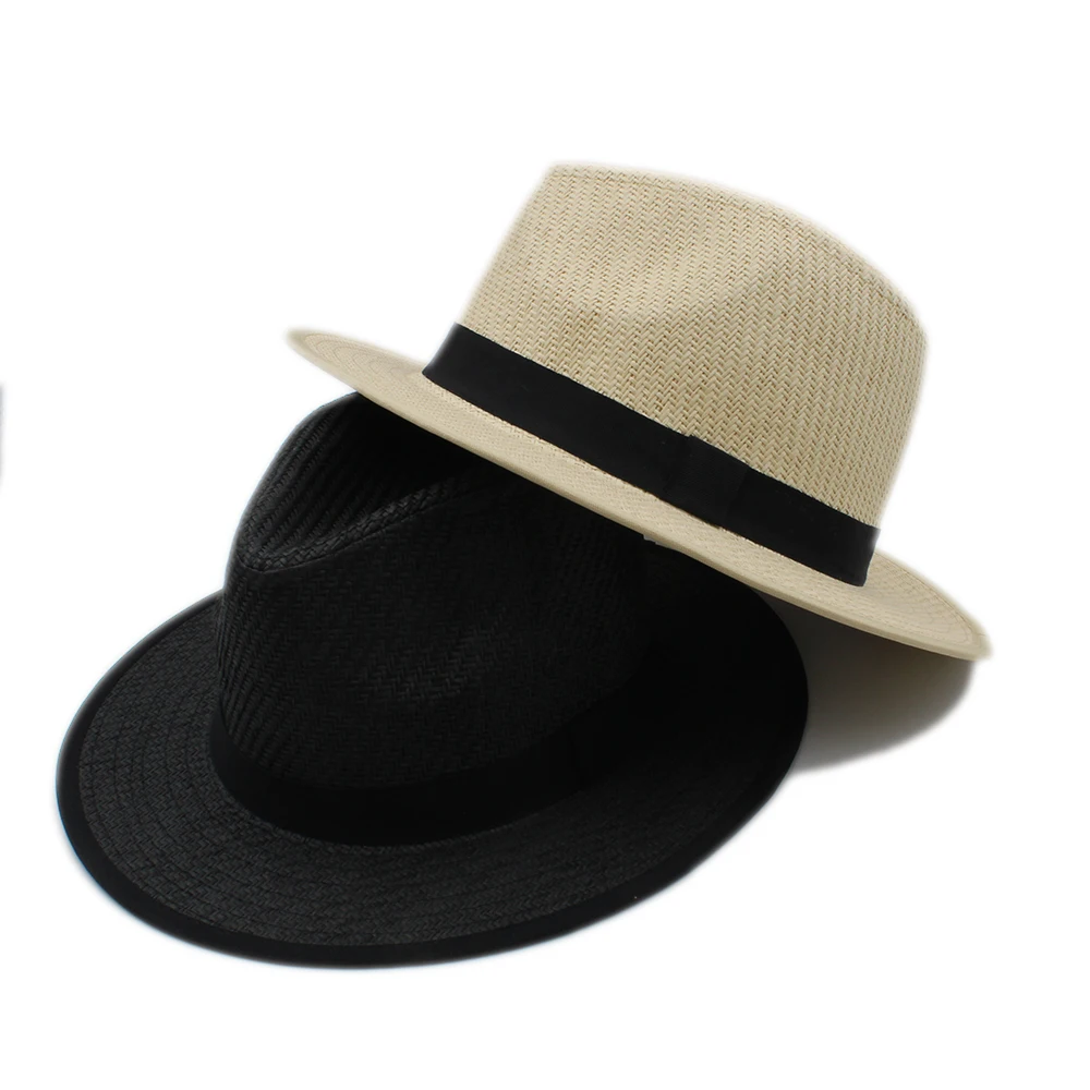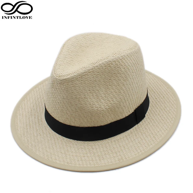 | [해외]INFINITLOVE 높은 품질 여성 남성 패션 일반 블랙 리본 밴드 여름 해변 휴가 여행 캐주얼 파나마 재즈 태양 밀짚 모자 |