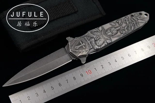 | [해외] JUFULE 원래 디자인 십자군 9Cr18MoV 접이식 캠핑 사냥 포켓 생존 EDC 도구 전술 야외 플리퍼 부엌 칼 |