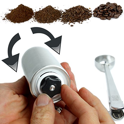 -. Title : Manual Coffee Grinder Professional Heavy Duty Stainless Steel with Adjustable Ceramic Burr Premium Portable Coffee Mill Offers Consistency And Precision. Aeropress Compatible Includes Stainless Spoon