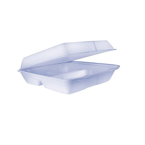 Dart 95HTPF3R Foam Hinged Lid Container, 3-Comp, 9.3w x 9 1/2d x 3h, White, Bag of 100 (Case of 2 Bags)