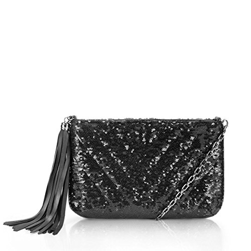 -. Feature : Dimensions: 9.25"L x 7.25"H x 1.5"W / Detachable cross body chain 21" drop / Color: Black Sequin