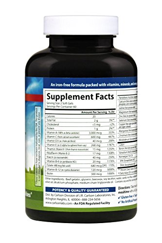 Carlson Super 2 Daily, Advanced Multiple Formula with Lutein + Omega-3s, Optimal Wellness, 120 Soft Gels