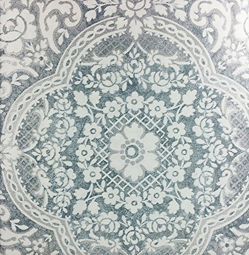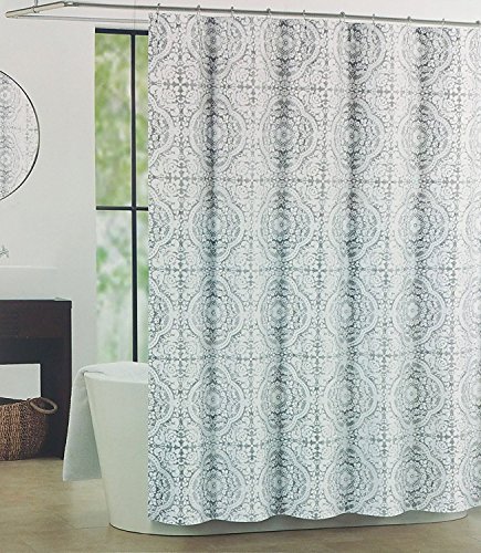 Tahari Luxury Shower Curtain Abbey Gray Medallion Pattern with Silver Highlights on White Background