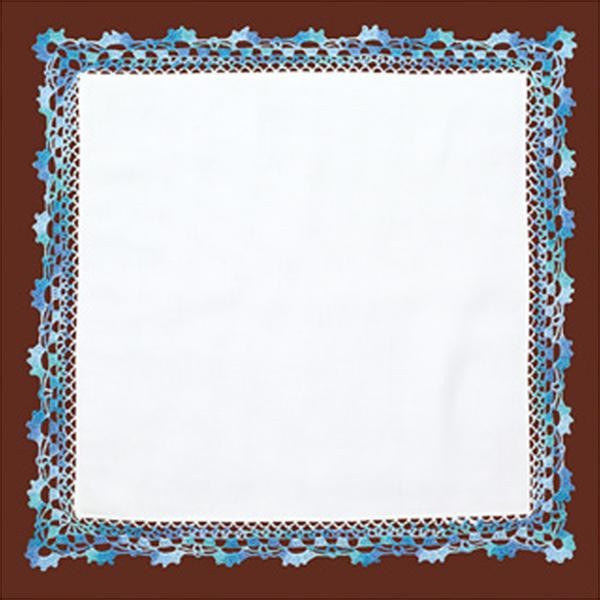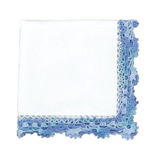 | 初級~中級者向け。ブルーレースのエジングで華やかでオシャレなハンカチができます。 |