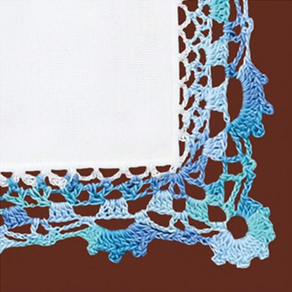 初級~中級者向け。ブルーレースのエジングで華やかでオシャレなハンカチができます。 |