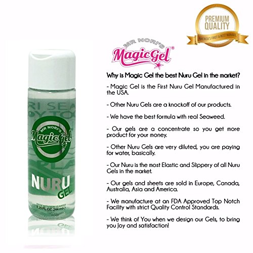 Studio : Mr. Nori's Magic Gel Publisher : Mr. Nori's Magic Gel Binding : Health and Beauty Product Description The extraordinary sensual body-to-body nuru massage gel, formerly Numa TM, which is formulated from the highest quality ingredients, including aloe vera, chamomile, grapefruit extract and powerful moisturizing nori seaweed. This gel is tasteless, transparent and has a fluent consistency ? for long lasting Nuru Massages and excellent sexy playtime in bed, bathtub or shower! 0