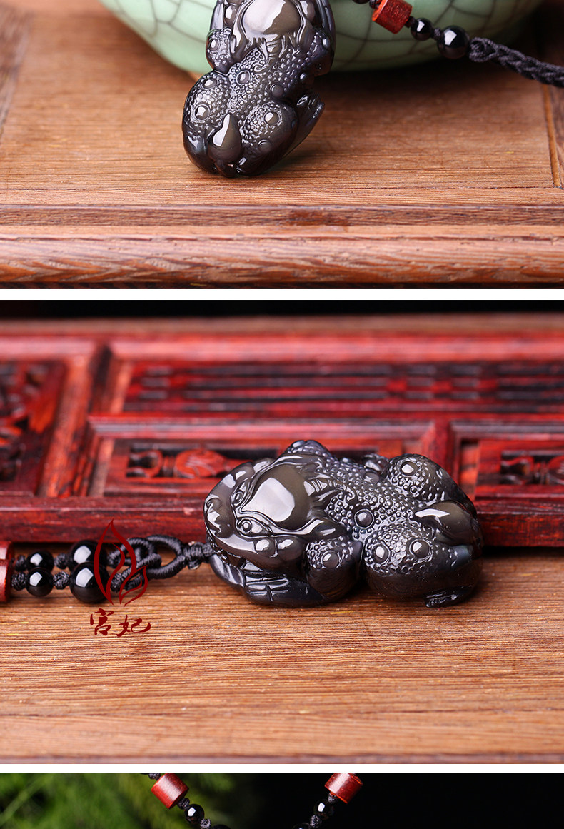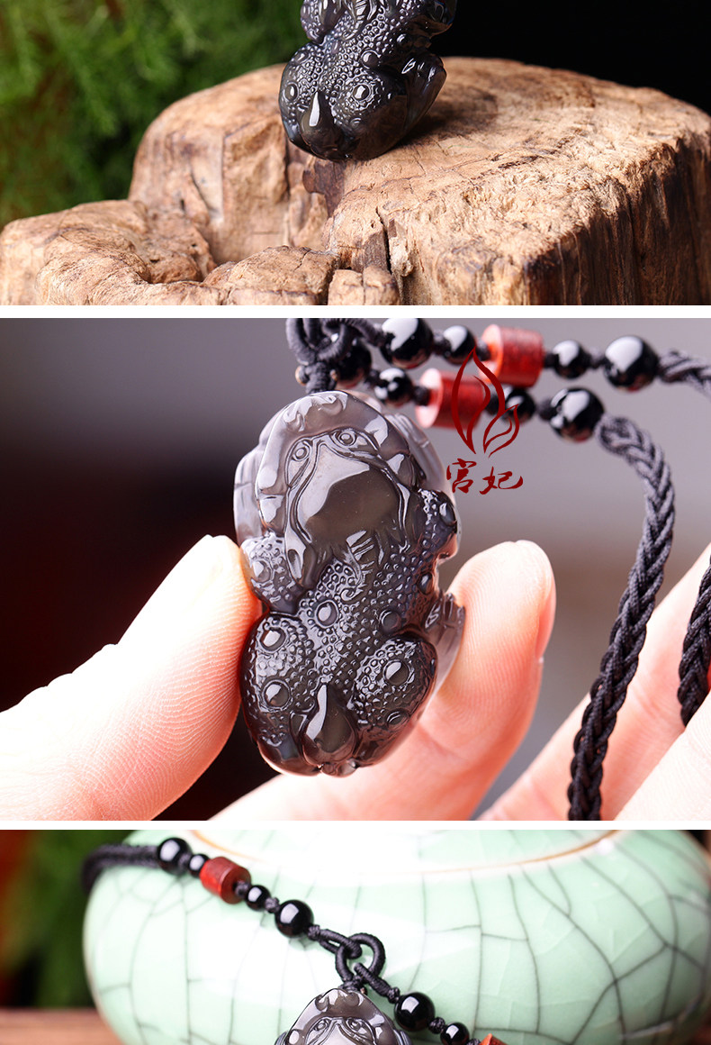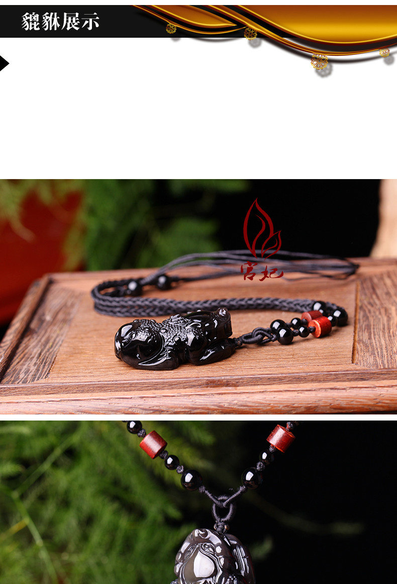 彩虹眼天然冰种黑曜石貔貅吊坠男女士飞天兴财貔貅吊坠