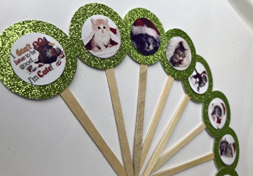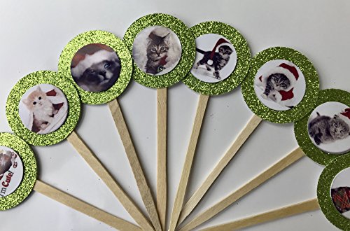8 Christmas Kitty I Love My Cat Pet Cupcake Toppers Favors Girl Boy Birthday Party Favor Tags Bags Animal Lover Cat Lady