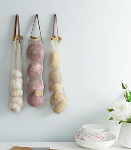 TtoyouU 3pcs Reusable Fruit and Vegetable Mesh Bags for Hanging Storage