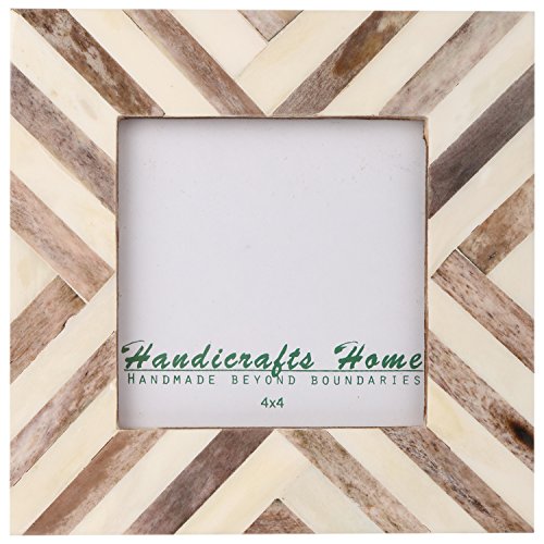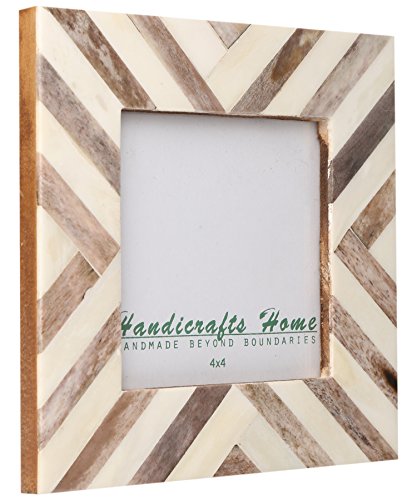 Picture Frames Photo Frame Chevron Herringbone Vintage Wooden Handmade Naturals Bone Classic Size 4x4 Inch (Brown)