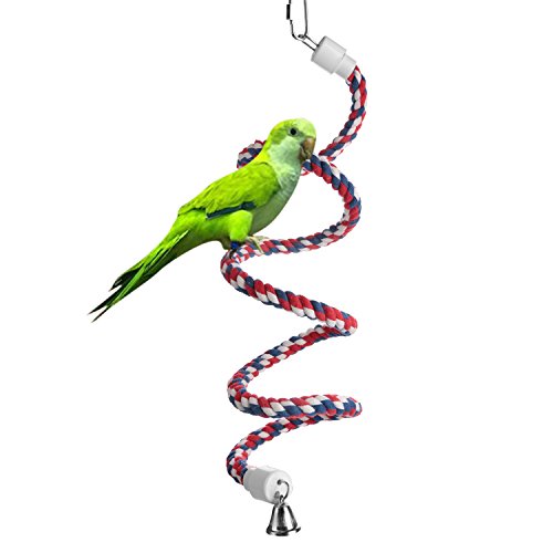 Aigou Bird Spiral Rope Perch, Cotton Parrot Swing Climbing Standing Toys with Bell