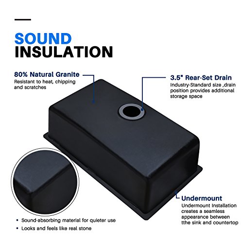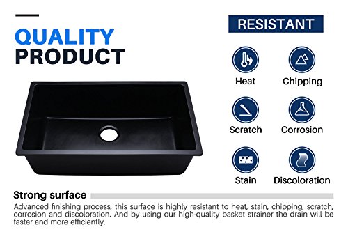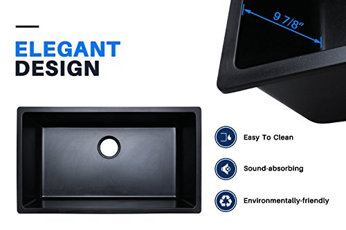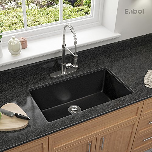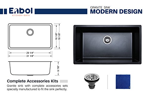 Enbol GSS-3118 31 Inch Single Bowl Undermount Granite Kitchen Sink Black