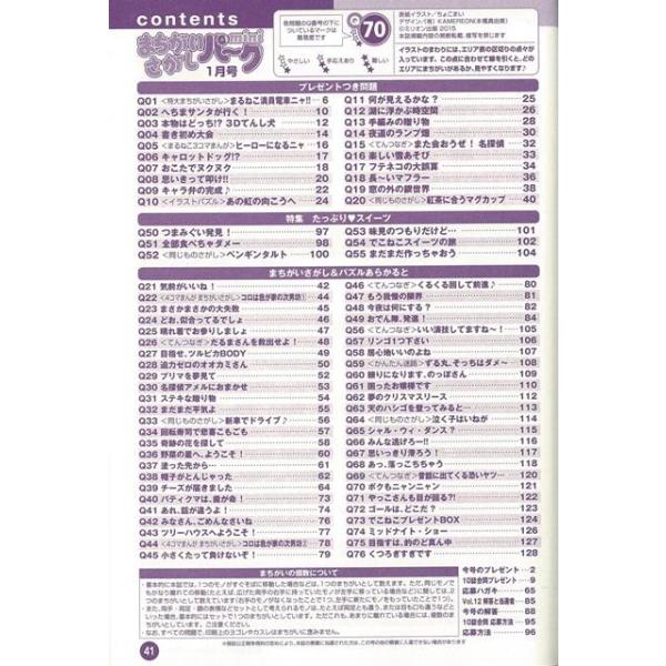 【商品基本情報】 商品名称:まちがいさがしパークmini 2015年1月号 著者/出版社:パズル雑誌/パズル雑誌 初版発行日:2014/12/02 サイズ:A5判 ページ数:128 ISBN/JAN:4528189425323/4528189425323