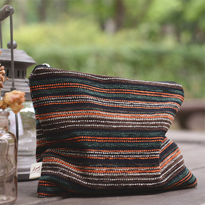 [상품코멘트] 브라운&오렌지&그린 계열의 직조 컬러가 조화를 이루고있는 파우치입니다. 겉감 니트 재질과 안감 면이 조합되어 단단한 소재로 인해 따뜻함이 느껴집니다.