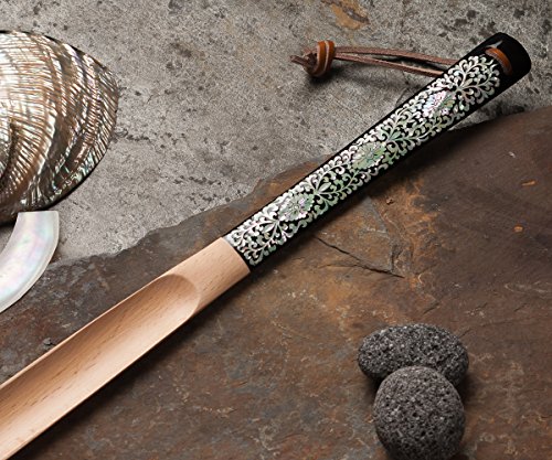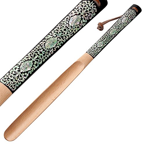 Product Description This wood shoe horn is ornamented with an intricate mother of pearl design of arabesque. The elaborate adornment with the iridescence of mother of pearl designs makes it an impressive item for collection. 0