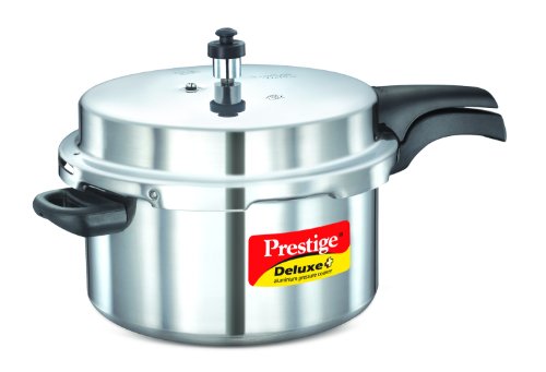 Prestige Deluxe Plus aluminum Pressure Cooker: It comes with Induction base which makes it the most versatile pressure cooker available. It can work on any heat source and enables you to cook delicious dishes in a smart way at the highest of safety through its Pressure Indicator which rises above the lid under pressure and drops when the pressure inside falls to zero, giving a visible indication to safely open the cooker. Helps you cook Faster. It has a Shiny finish. It features an automatic locking system. The overall look of the cooker is pleasing and attractive. Suitable for hob types electric, gas, ceramic, halogen and solid hot plates. Durable and handy. A strong and easy-grip handle. Faster cooking locks in vitamins. A great and must-have cookware for your kitchen. Great for cooking good, healthy food. A great and must-have cookware for your kitchen. It is a light weight cooker. Due to the use of Aluminum, the cooker is easy and light to use and store.Feature