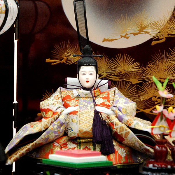 ・台座・屏風等には落ち着いた色目の雛人形セット。
