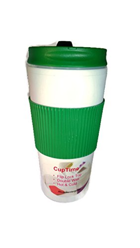 Save money and the environment with this chic reusable travel mug. Double-wall design helps keep drinks warm or cold and the textured non-slip sleeve helps you keep a grip on hot beverages without the burn. Plus, the screw-on-lid with a flip open cap helps prevent leaks and spills.