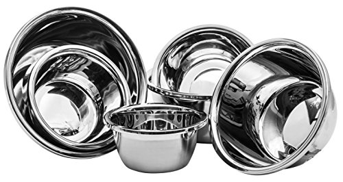 COMMERCIAL HEAVY GRADE METAL STAINLESS STEEL - Only the highest grade stainless steel is used so you can rest assured knowing these bowls will never rust and are dent resistant. Stainless makes a great cooking and mixingbowl material because it won’t retain odors or stains, and it doesn’t leach harmful chemicals. Our cookware is deeper than standard bowl sets allowing for larger servings and less mess. Six smart looking bowls offer the individual flexibility from food prep to the table.