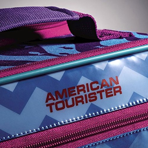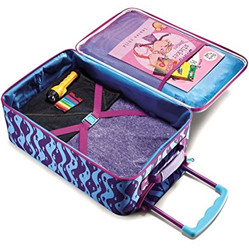 Available in a wide range of colorful character prints, this upright rolling case is perfect for kids on the go. The American Tourister Disney 18" Upright Softside luggage is made from durable polyester fabric and features an allover multicolored print with a telescoping pull handle and side mounted skate wheels that make it easy to maneuver. Accented with a top grab handle for easy lifting, this roller case includes a fully lined interior with crisscrossing tie-down straps to hold garments in place and a mesh pocket underneath the lid. An exterior front zipper pocket provides extra storage for last minute additions. Pack more fun with Disney and American tourister children's backpacks!Feature