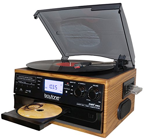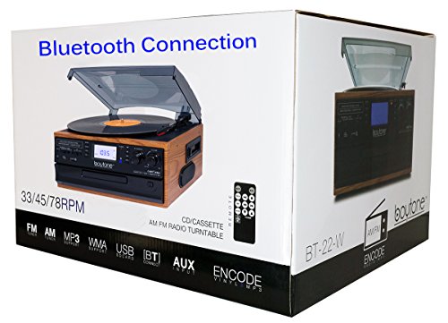 - Boytone BT-22W Classic style with modern technology - Bluetooth wireless music streaming turntable with 2 built-in stereo speakers. Encode/ Convert from Vinyl, Radio, and Cassette to MP3, SD slot, USB, AUX. Convert vinyl to MP3 format without a computer.