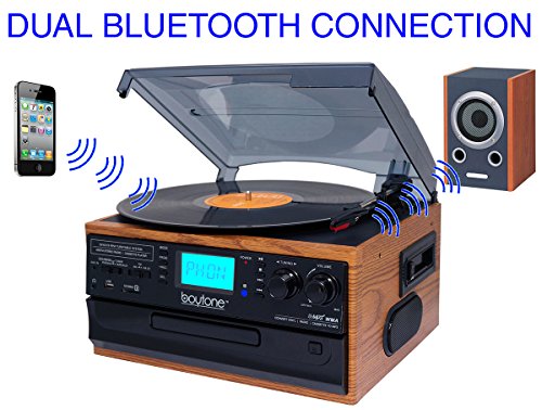 Boytone BT-22W, Bluetooth Record Player Turntable, AM/FM Radio, Cassette, CD Player, 2 built in speaker, Ability to convert Vinyl, Radio, Cassette, CD to MP3 without a computer, SD Slot, USB, AUX