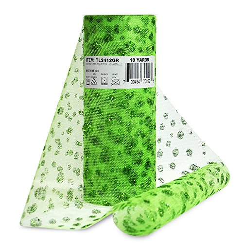 Tulle Glitter Dots 6" Wide 10 Yards Buy-The-Spool-Green W/Green Glitter