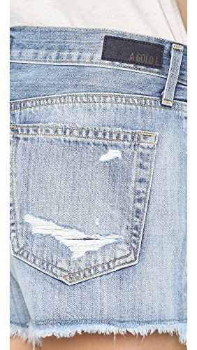 Allover shredded holes and fading lend a well-loved look to these long-rise A Gold E cutoff shorts. 5-pocket styling. Button fly.