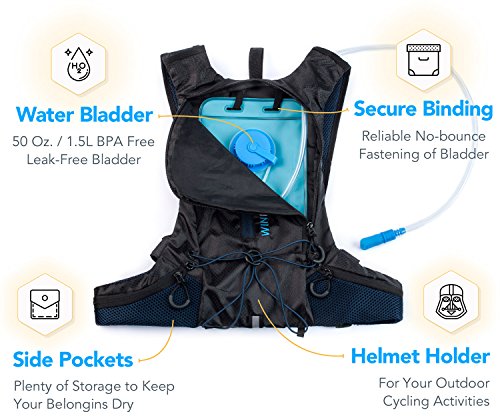 Hydration Pack for Running, Walking, Hiking, Biking - 50 oz / 1.5L Backpack Water Bladder - Lightweight Running Gear - For Women, Men, Kids
