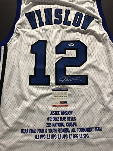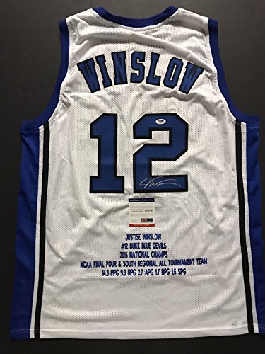 Autographed/Signed Justise Winslow Duke Blue Devils White Stat Basketball Jersey PSA/DNA COA