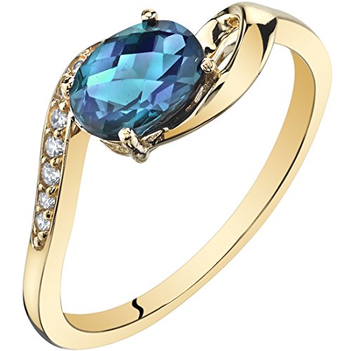 -. Title : 14 KイエローゴールドCreatedアレキサンドライトバイパスリング1.00カラットサイズ5 – 9